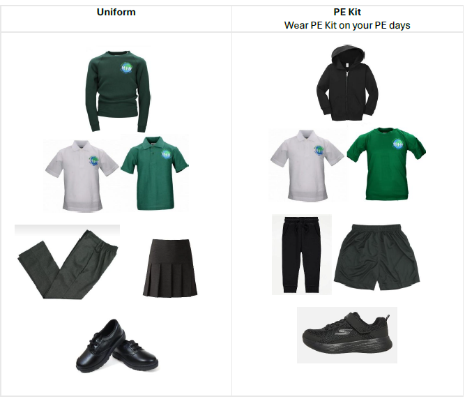 Children in Reception – Year 6 are expected to wear school uniform. Uniform does not need to contain the school logo but should be the same colour.